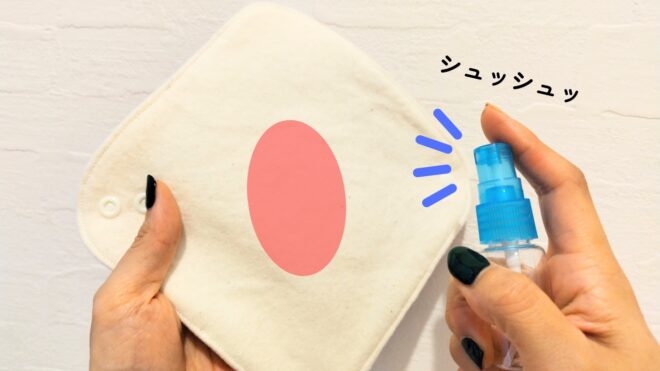 使用済み布ナプキンにシュッシュッと吹きかけおくと、経血汚れが落ちやすくなります。