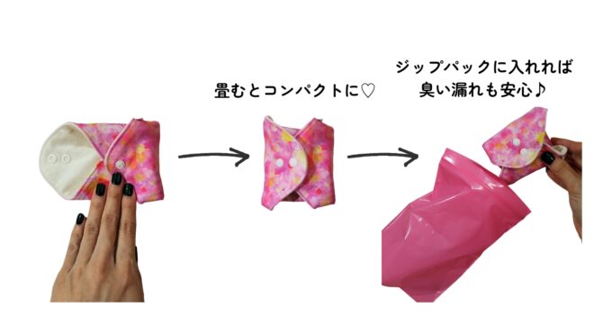 外出時に布ナプキンを替えた時は、使用済み布ナプキンをジップパックに入れて持ち帰れば臭い漏れの心配なし!